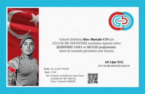Mersin Valimiz Sayın Ali İhsan SU’ya Derneğimiz tarafından organize edilen 24 Aralık 2017 Pazar günü yapılacak olan Gülnarlı Şehidimiz Hacı Mustafa CAN’ın anma töreni ve tüm şehitlerimiz adına yapılacak olan Mevlid programına ilişkin davetiye takdim ettik.