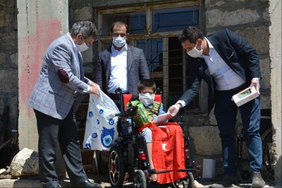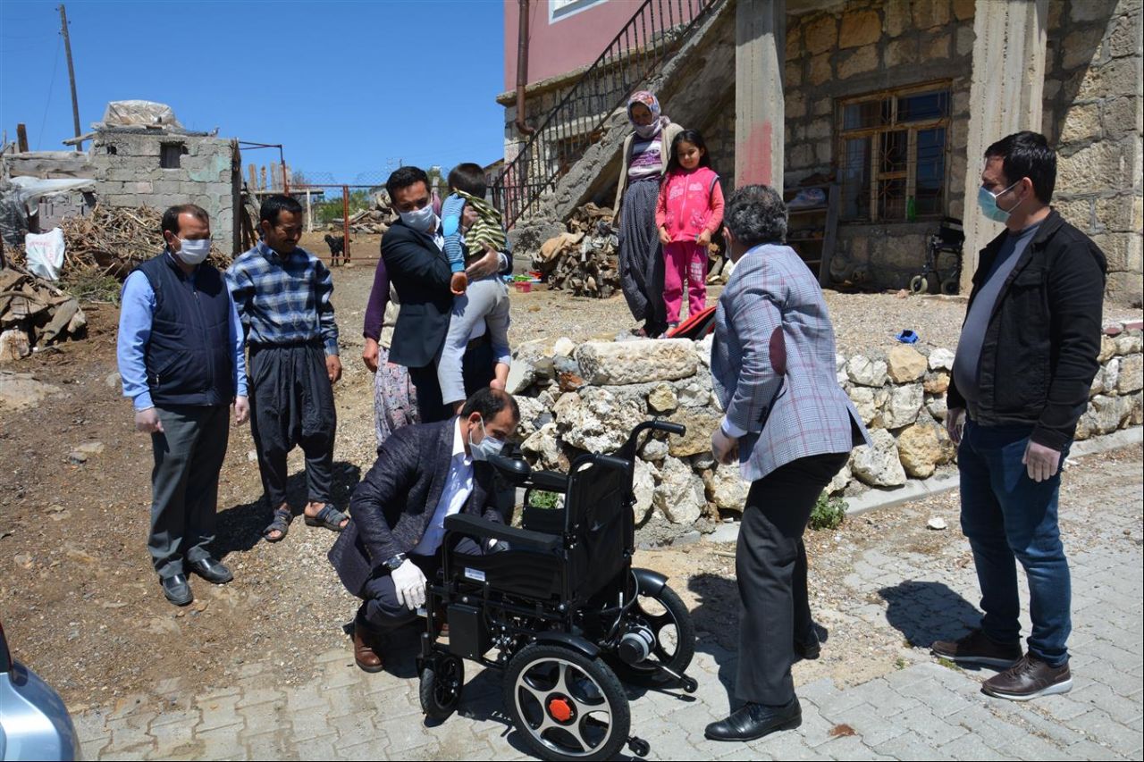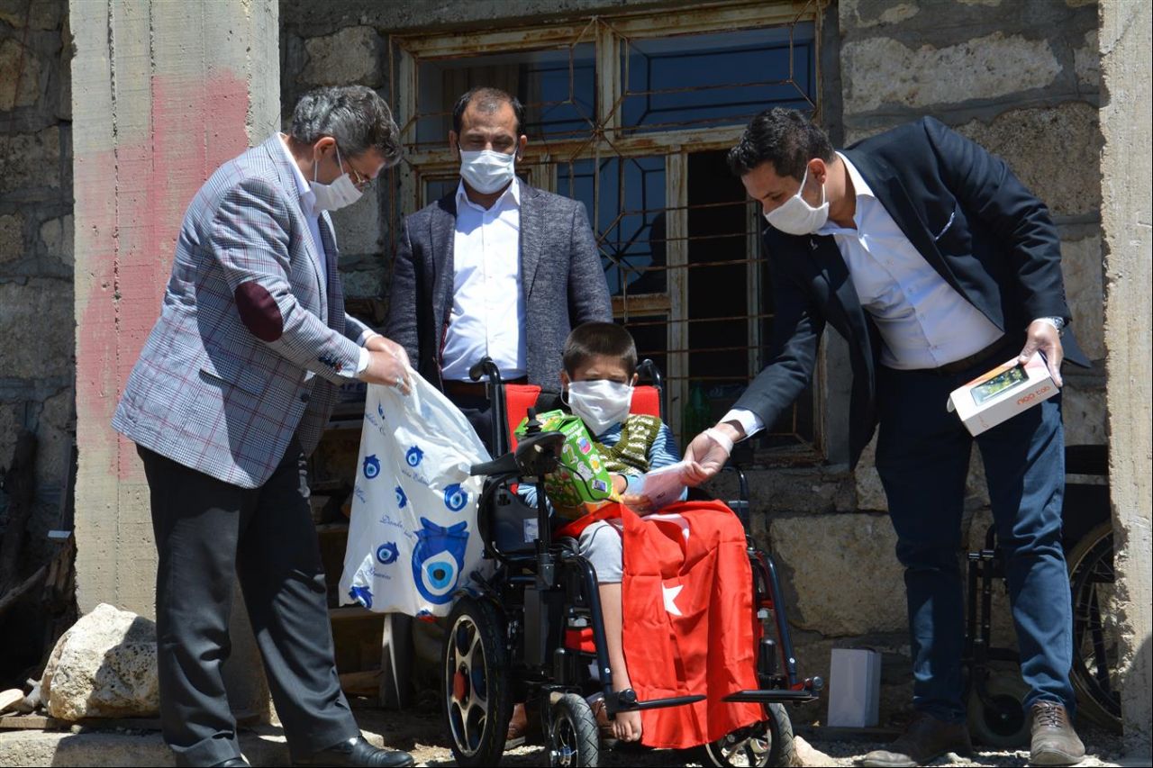 Gülnar Belediye Başkanı Alpaslan ÜNÜVAR’ın talimatları doğrultusunda Gülnar Belediyesi Sosyal Yardım İşleri ekibi tarafından yapılan çalışmalar sonrası Gülnar ilçesi Kayrak Mahallesinde ikamet eden kas hastalığı nedeniyle yürüyemeyen ilkokul 3. sınıf öğrencisi Yusuf Borcaktepe isimli öğrencimize Gülnarlı Hemşerimiz Halil Öz tarafından hayırsever vatandaşlarımızdan tedarik edilen tam sistem otomatik akülü tekerlekli sandalye Sosyal Yardım İşleri ekibince teslim edildi. Ayrıca 23 Nisan Ulusal Egemenlik ve Çocuk Bayramı sebebiyle Gülnar Belediye Başkanı Alpaslan Ünüvar tarafından tablet bilgisayar ve Gülnarlı Hemşerimiz Halil Öz tarafından çeşitli hediyeler verildi.