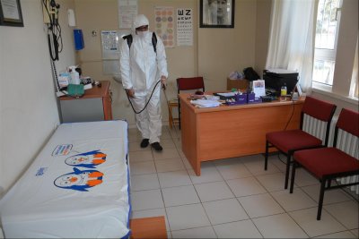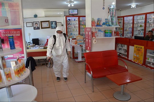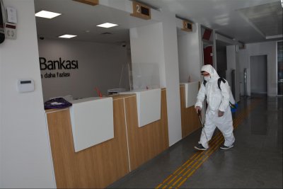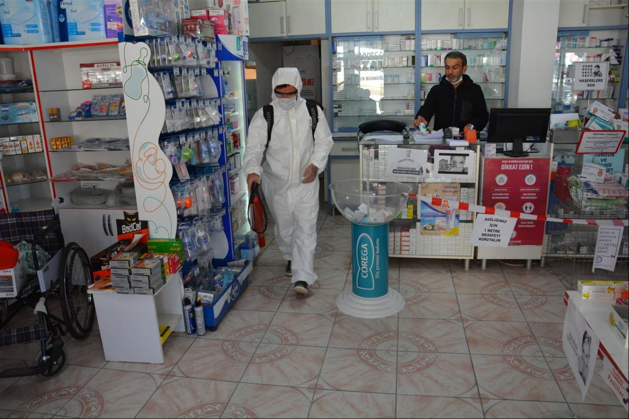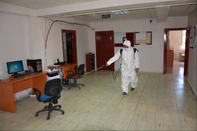 Dezenfeksiyon için oluşturulan dezenfekte ekipleri, koronavirüs salgınının önlenmesi için gece gündüz çalışarak tedbiri elden bırakmıyor. Ekipler önlem çalışması kapsamında; başta tüm kamu kurumları binaları olmak üzere okullar, eczaneler, bankalar, camiler, parklar, sosyal tesisler, vatandaşların yoğun olarak kullandığı tüm noktaları titizlikle dezenfekte ediyor. Dezenfeksiyon çalışmalarını Sağlık Bakanlığı’nın önerdiği işlemler doğrultusunda gerçekleştiriliyor.