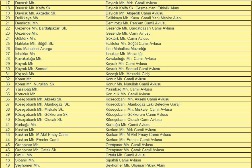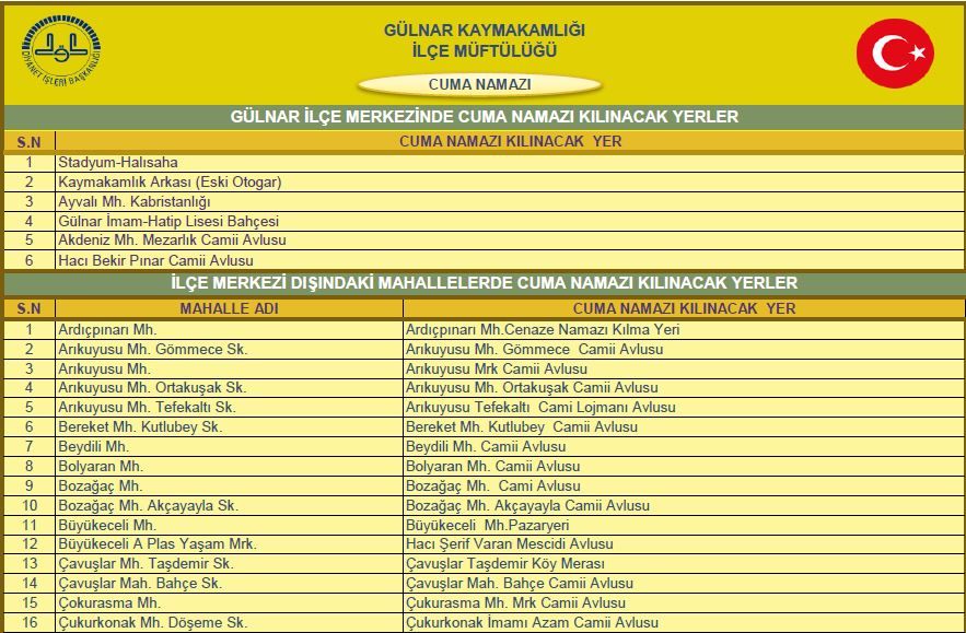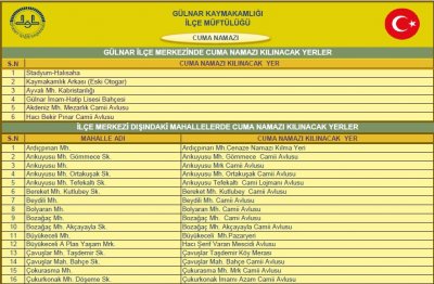 İlçemizde Cuma Namazı Kılınacak Yerler: