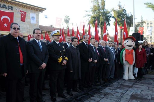 İlimizin Düşman İşgalinden Kurtuluşunun 91’inci Yıl Dönümü Coşkuyla Kutlandı![]() İlimizin düşman işgalinden kurtuluşunun 91’inci yıl dönümü kutlandı. Düzenlenen törenlerde büyük coşku hakimdi. Sabah saatlerinde Tren Garı’nda başlayan törende Muharip Gaziler Derneği üyelerinin yer aldığı 'Temsili Kurtuluş Treni' Valimiz tarafından karşılandı. Trenden inen derneğin Mersin Şube Başkanı Kemal Cındız, elindeki Türk Bayrağı’nı öperek Valimiz Sayın Hasan Basri Güzeloğlu’na teslim etti. Bayrağımızı öperek teslim alan Valimiz daha sonra Mersin Milletvekillerimiz Mehmet Şandır, Ali Öz, Aytuğ Atıcı, Vahap Seçer, İsa Gök, Akdeniz Bölge ve Garnizon Komutanı Tuğamiral Hayrettin İmren, Büyükşehir Belediye Başkanı Özcan ve il protokolü ile çok sayıda vatandaşımızın yer aldığı kortejle Cumhuriyet Meydanı’na kadar yürüdü. Cumhuriyet Meydanı girişinde Toroslar Belediyesi tarafından düzenlenen Kuvvay-i Milliye yürüyüşüne katılan vatandaşlar ile Valimizin yer aldığı kortejin birleşmesiyle coşku doruğa ulaştı. Buradaki törende Atatürk Anıtı'nı çelenkler sunulurken Valimiz, Sayın Hasan Basri Güzeloğlu, Akdeniz Bölge ve Garnizon Komutanı Tuğamiral İmren ile Mersin Büyükşehir Belediye Başkanı Özcan araç üzerinde alandaki vatandaşlarımızın kurtuluş günlerini kutladılar. Törende konuşan Mersin Büyükşehir Belediye Başkanı Macit Özcan, ilimizin eski dönemlerde bir balıkçı köyü olduğunu hatırlatarak, verilen mücadele sonrasında elde edilen kurtuluş ile birlikte Mersin'in bir dünya kenti olmaya doğru emin adımlarla yürüdüğünü söyledi. Gaziler adına bir konuşma yapan Muharip Gaziler Derneği Mersin Şubesi Başkanı Kemal Cındız ise ilimizin kahramanca verilen mücadele sonrasında düşmanı kovduğunu belirtti. Öğrenciler tarafından Atatürk ve Mersin temalı şiirlerin okunduğu tören, İl Milli Eğitim Müdürlüğü ve Büyükşehir Belediyesi’ne bağlı halk oyunları ekiplerinin sunduğu dans gösterilerinin ardından sona erdi. Törenin ardından halkın arasına karışarak vatandaşlarla bir süre sohbet eden ve onlarla hatıra fotoğrafı çektiren Valimiz basın mensuplarına da açıklamalarda bulundu. Duygu ve düşüncelerini dile getiren Valimiz, "Mersin için çok özel bir günü kutluyoruz. Kurtuluşu bizlere armağan eden Mustafa Kemal Atatürk ve silah arkadaşlarını rahmetle anıyoruz. Akdeniz'in ve Türkiye'nin en önemli kentlerinden birisi olan Mersin'de, 91 yıl önce Anadolu'nun her köşesindeki her Türk'ün işgale karşı gösterdiği mücadeleyi buradada gösteren atalarımız Mersin'i sonsuza kadar Türk yurdu yapmışlardır. Rengini şehitlerimizin kanından alan al bayrağımız sonsuza kadar Mersin'in gönderinde dalgalanacaktır. 91 yıl önceki milli mücadele ruhunu yeniden yaşamanın mutluluğu içerisindeyiz. Bizlere Mersin'in kurtuluşunu armağan eden Büyük Önderimiz Atatürk ve kahraman askerlerimize karşı bizim görevimiz de Mersin'i hem Türkiye'nin hem de dünyanın en gelişmiş kenti yapmaktır" dedi. Valimiz ve beraberindekiler daha sonra Gazeteci Haldun Okdemir tarafından derlenen Atatürk Fotoğrafları Sergisi'ni gezdi. Atatürk Evi'ndeki sergide yer alan Fotoğrafları inceleyerek eserler hakkında bilgi alan Valimiz, son olarak Mersin Büyükşehir Belediye Başkanı Macit Özcan'ı ziyaret etti. 03.01.2013