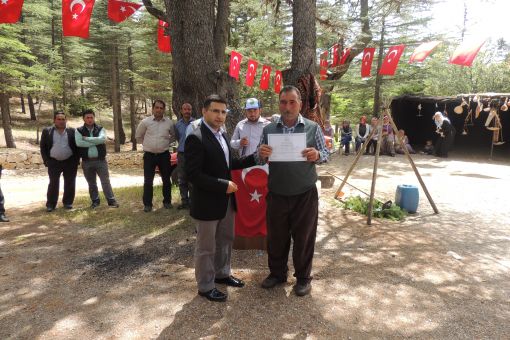 Gülnar İlçesi Köse çobanlı Mahallesi Katran mesire alanında Damızlık Koyun ve Keçi yetiştiricileri birliği tarafından düzenlenen törenle Çobanlar sertifikalarını aldılar. Gülnar, Damızlık Koyun ve Keçi Yetiştiriciliği Birliği Temsilcisi Mustafa Değirmenci Sertifika töreninde yapmış olduğu konuşmada,Gülnar İlçe Milli Eğitim Müdürlüğü ,İlçe Gıda Tarım ve Hayvancılık Müdürlüğü ,Mersin Damızlık Koyun ve Keçi Yetiştiriciliği Birliği Başkanlığı tarafından 120 saatlik Çobancılık kursu gerçekleşti.Kurs sonunda 75 kursiyerimize sertifika vermek üzere toplanmış bulunuyoruz.Davetimize icabet ederek,törene katılan Başta sayın kaymakamımız olmak üzere,Garnizon komutanımıza,Belediye Başkan Yardımcımıza, tüm kurum amirlerimize,sivil toplum kuruluşlarının başkanlarına,Bizleri kırmayarak davetimize icabet eden çiçeği burnunda çok değerli Ak Parti İl Başkanımız sayın Cesim Ercik beye,Yine bu törenin yapılmasına vesile olan,Maddi ve Manevi destek sağlayan Çok Değerli İl Başkanımız Mehmet Akdoğan Beye,Siyasi Partilerimizin başkan ve temsilcilerine,velhasıl uzaktan ve yakından törene katılan herkese hoş geldiniz diyerek katılımlarından dolayı Teşekkür etti.